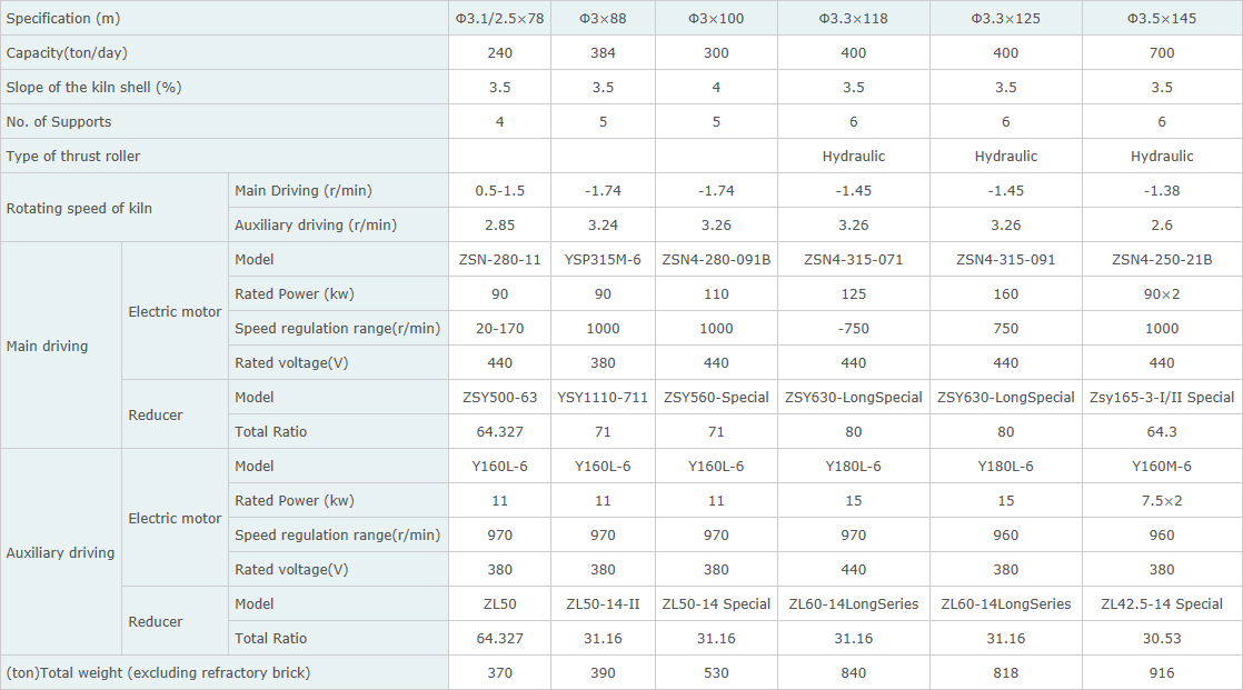 Wet rotary kiln, as building material equipment, is widely used in metallurgy, chemical industry, building refractory material, environmental protection and other industries. The rotary kiln consist cylinder, supporting device, support device with retainer wheel, drive device, active kiln head, kiln end sealing device, coal injection pipe device and other components. Wet rotary kiln body shows a certain degree of tilt to horizontal level. The entire kiln body is supported by roller device. It also has retainer wheel device to control the kiln body in case it runs up and down. The drive system also has auxiliary drive that can make kiln body drive when major power is off and prevent kiln body bending and being out of shape besides major drive. Kiln head and kiln end sealing device uses advanced technology to ensure reliability of sealing. |